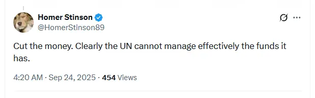 تاہم، عالمی سطح پر ٹرمپ کا یونائیٹڈ نیشنز کے ساتھ ’تکنیکی‘ معاملہ ایک مذاق بن گیا، اور باقی دنیا نے مزید سوشل میڈیا پر مزاحیہ جملے اور تبصرے لکھے جن میں سے کچھ سنجیدہ اور کچھ مزاح کا عنصر لئے ہوئے تھے جن میں سے کچھ تبصروں اور پوسٹ کو ہم نے یہاں اس نیوز میں شامل بھی کیا ہے۔