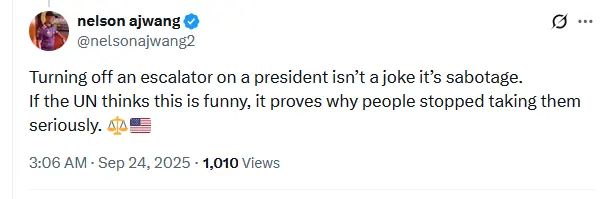 اب، سوال یہ تھا کہ کیا یہ محض ایک تکنیکی خرابی تھی، یا پھر کچھ اور؟ اقوامِ متحدہ کے ذرائع کا کہنا تھا کہ اس کا کوئی سازشی پہلو نہیں تھا۔ ان کے مطابق، اسکیلیٹر کا سیفٹی سسٹم کسی ایسے شخص کی وجہ سے فعال ہو گیا تھا جو ٹرمپ سے پہلے اس پر سوار ہوا تھا، اور پھر اسے دوبارہ چند منٹوں میں چلایا گیا۔ مگر کیا یہ صرف اتفاق تھا؟