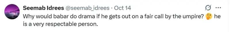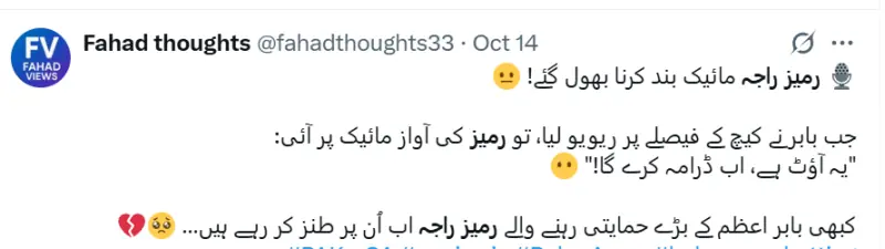 بابراعظم کے مداح رمیز راجہ کے اس غیر ضروری تبصرے پر ناخوش دکھائی دے رہے ہیں ۔ ایک صارف ایکس پر پوسٹ میں لکھا کہ ”اگر درست آؤٹ ہوتا تو وہ کیوں ڈرامہ کرتے؟“